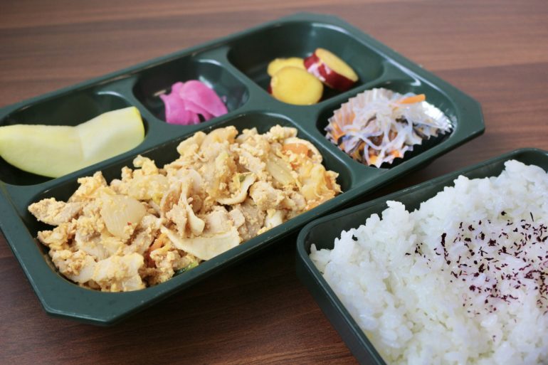 さつま芋は甘くホクホクに、副菜は春雨サラダと漬物、デザートにりんごです😊