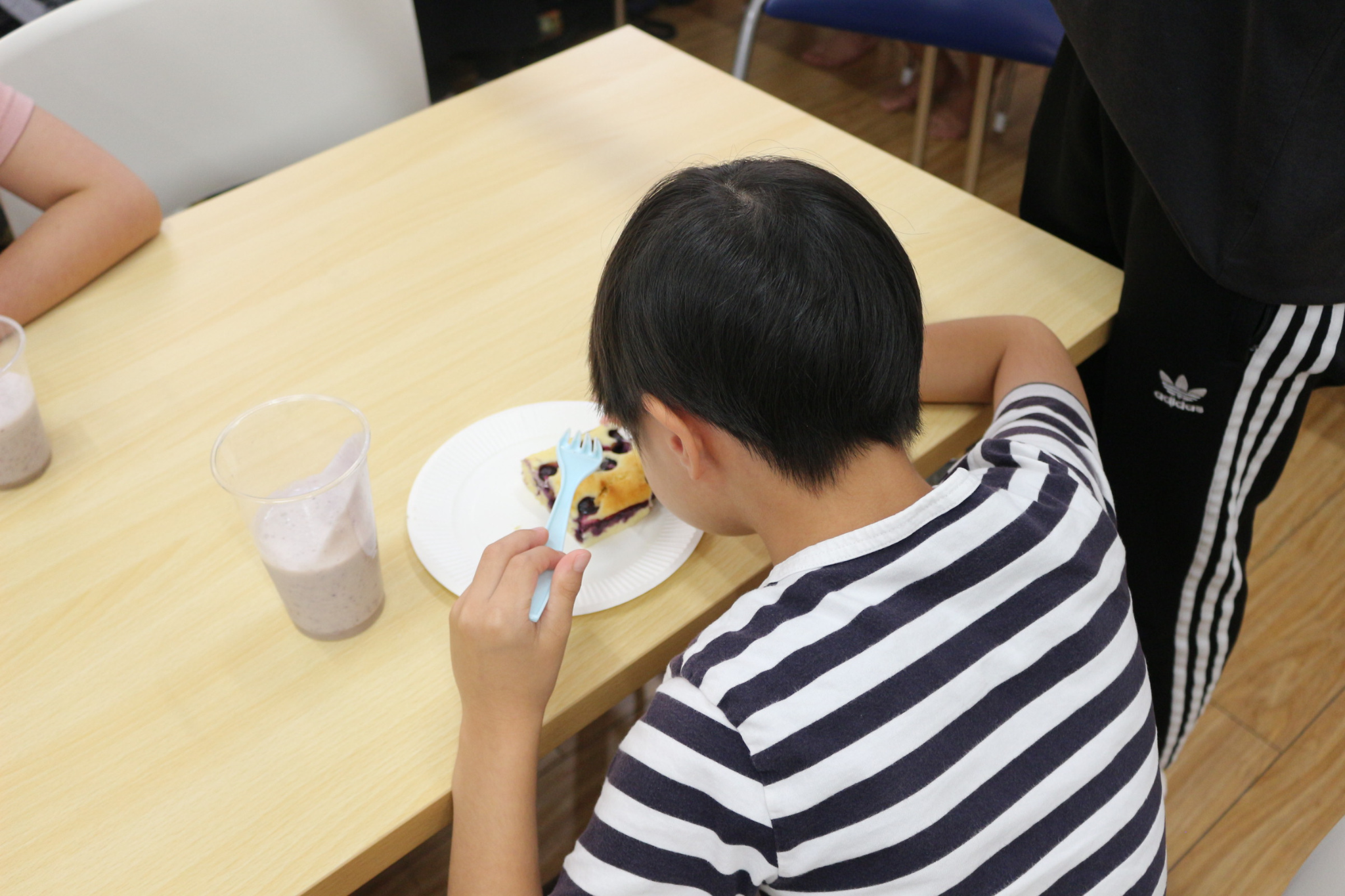 翌日、収穫したブルーベリーを使ってケーキやラッシーを作り、みんなでおいしくいただきました!
