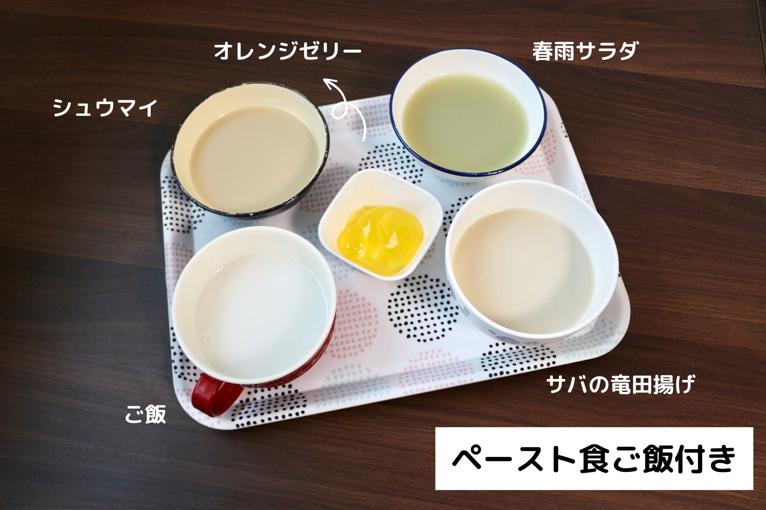 刻み食にはマカロニサラダ、ペースト食にはシュウマイなどもあります。