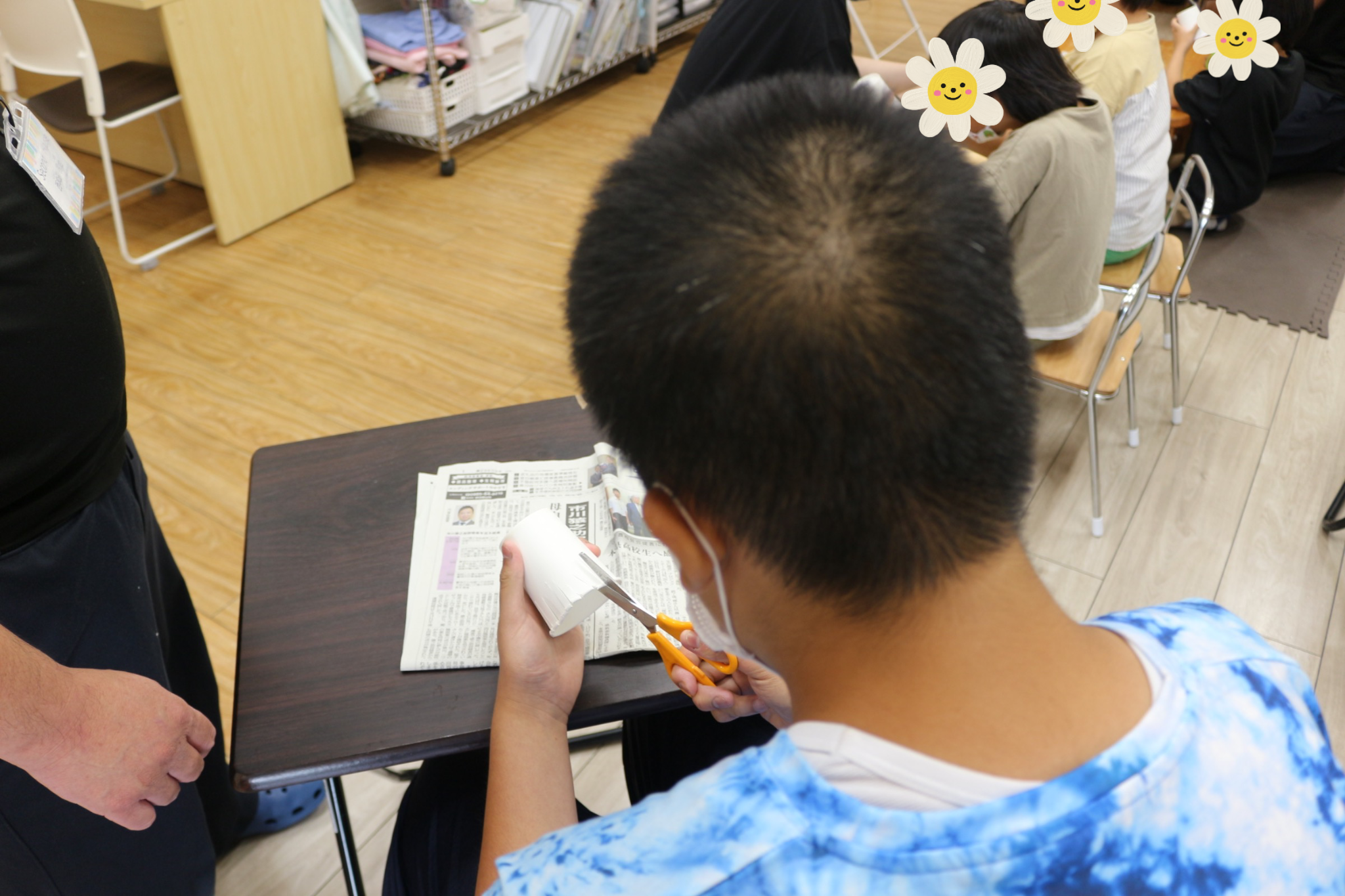 紙コップの縁を切って折り曲げたり、スタッフと一緒にお話しながら色を塗ったりと、手指の運動やコミュニケーションの練習にもなったと思います。