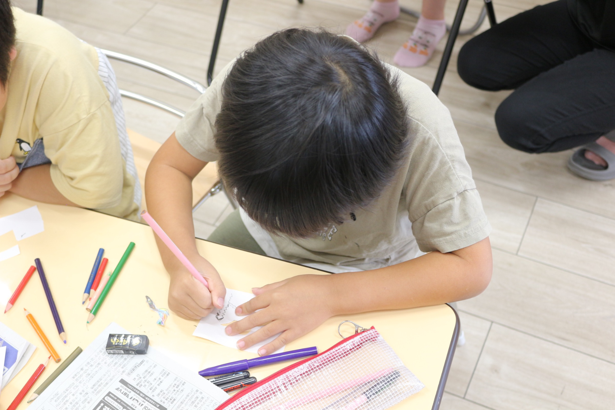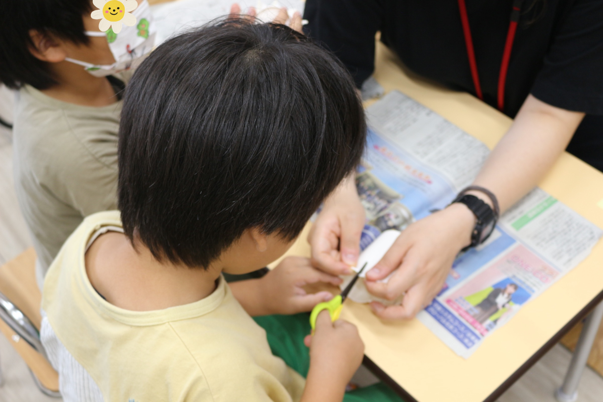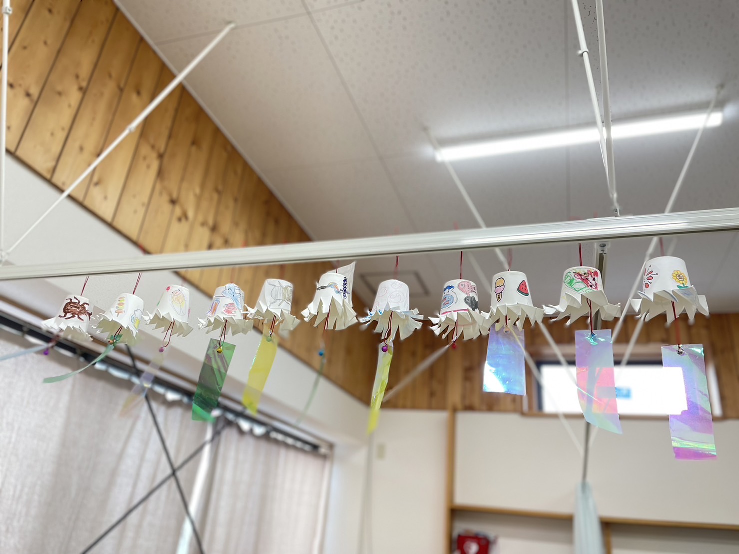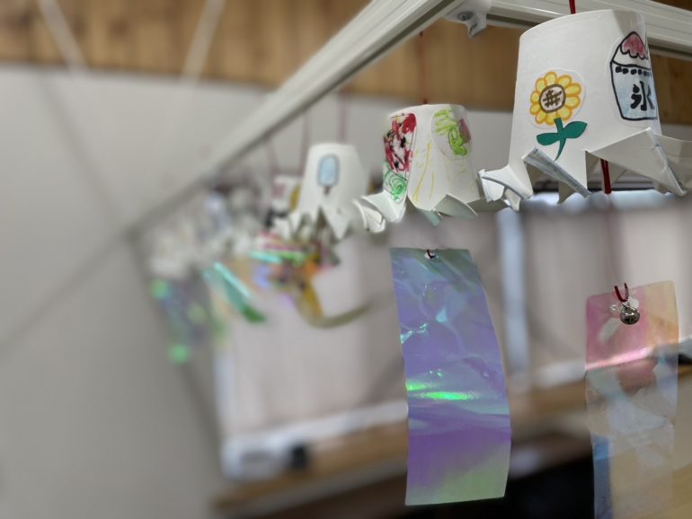 この日作った風鈴は紙コップを使い、子どもたちは好きなイラストを選んだり、自由に色を塗ったりしてオリジナルの風鈴に仕上げていきました!