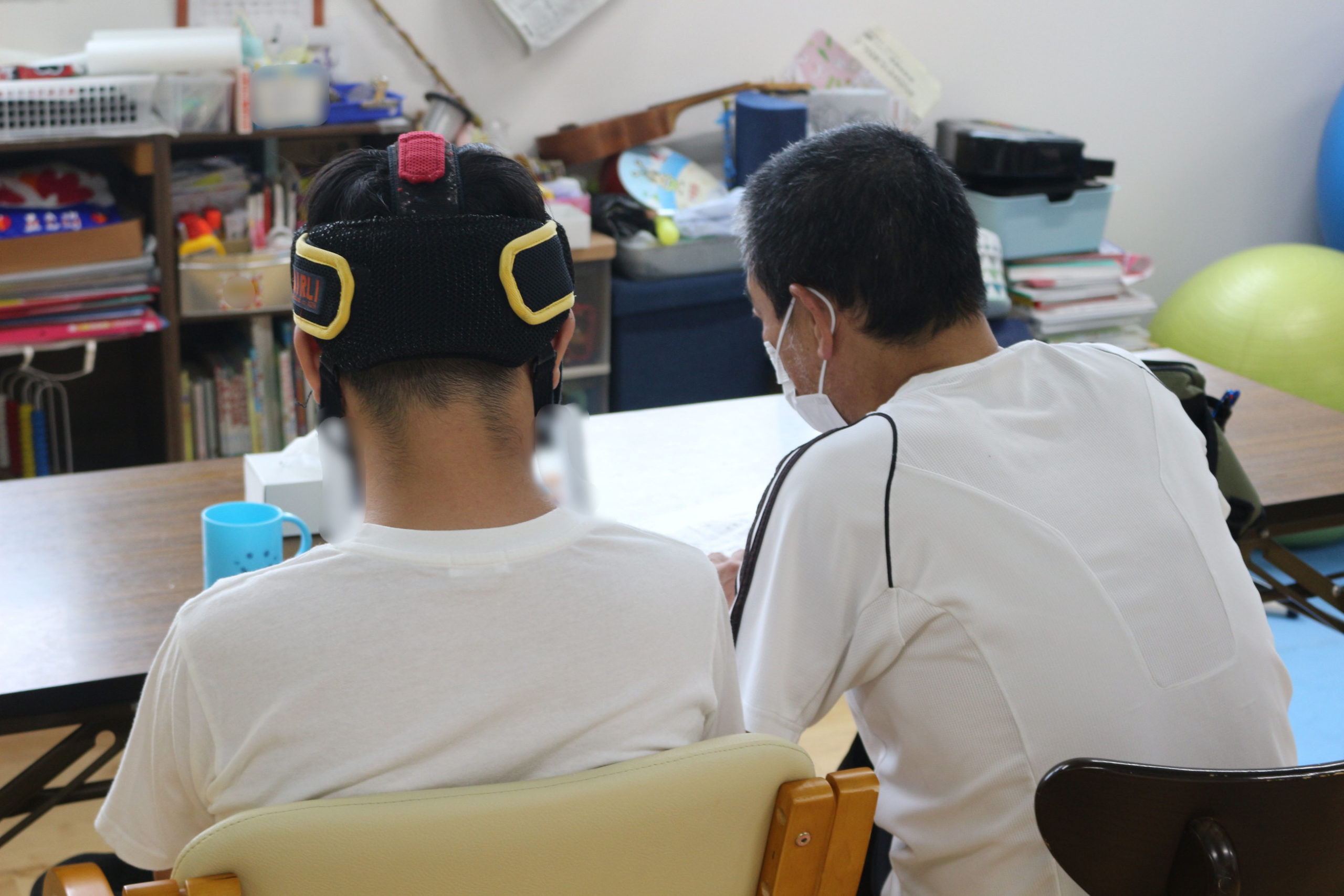 この日、保護者のお迎えを待つ利用者さんは、自分の好きな車についてスタッフと一緒にゆっくり語っていました。
