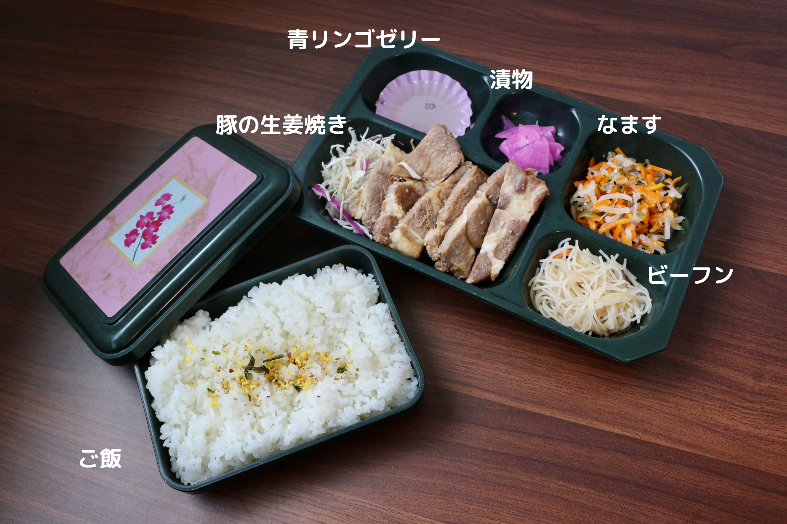今日は豚の生姜焼き、なます、ビーフン、漬物、ご飯のお弁当です!