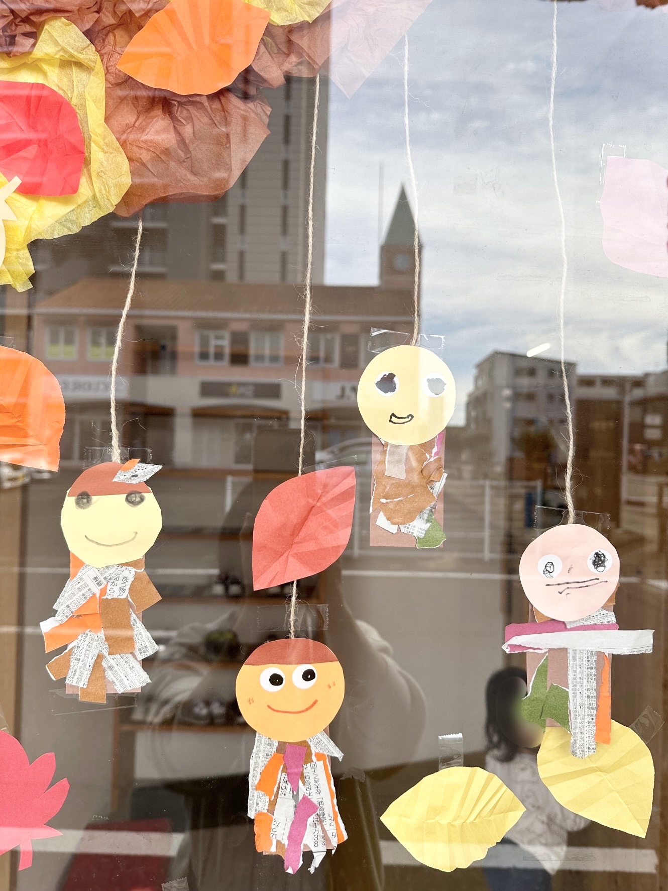 みの虫は小さい子たちがビリビリ破いた紙を年長の子たちが張り合わせ、顔を描いて作りました。