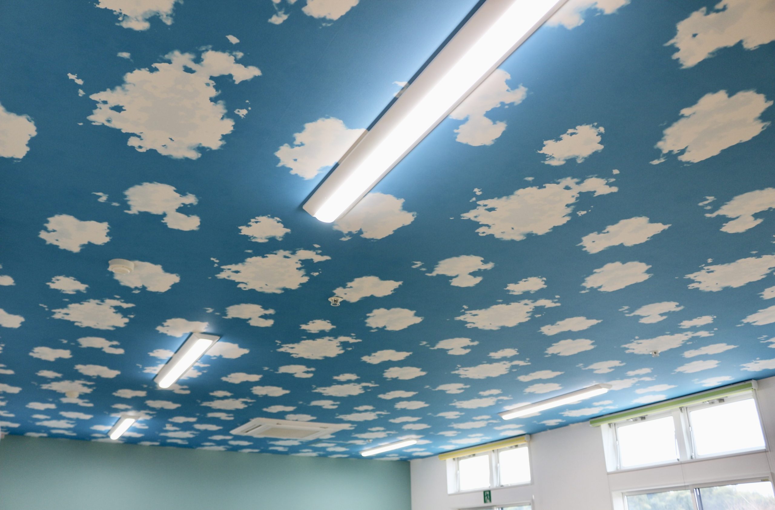 多目的室の天井には一面の青空が広がっています。