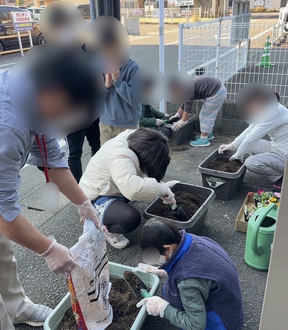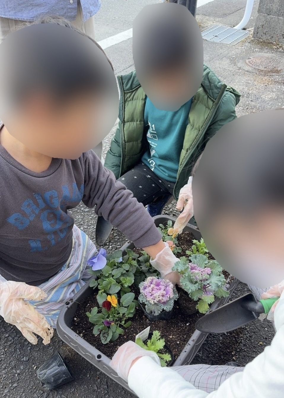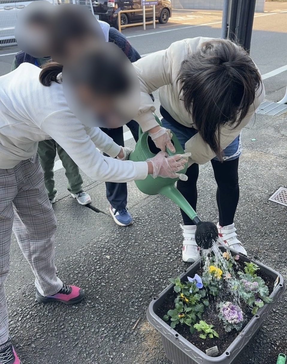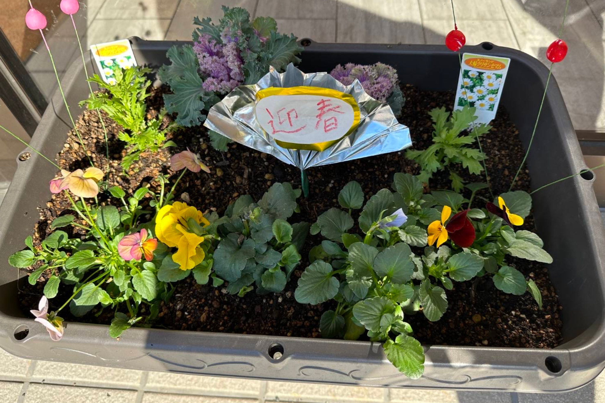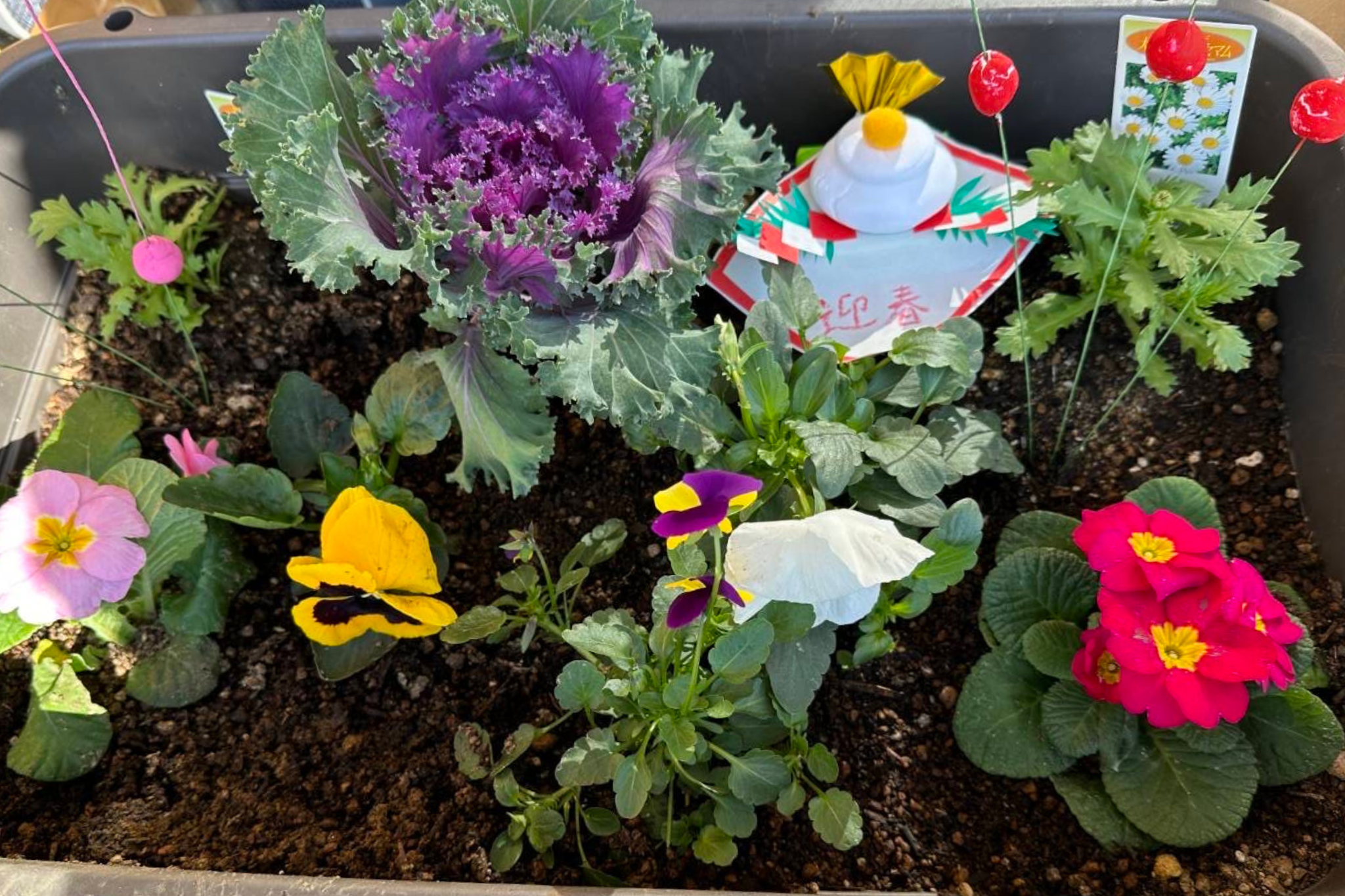 大掃除も無事に終わり、みんなで寄せ植えを作りました。