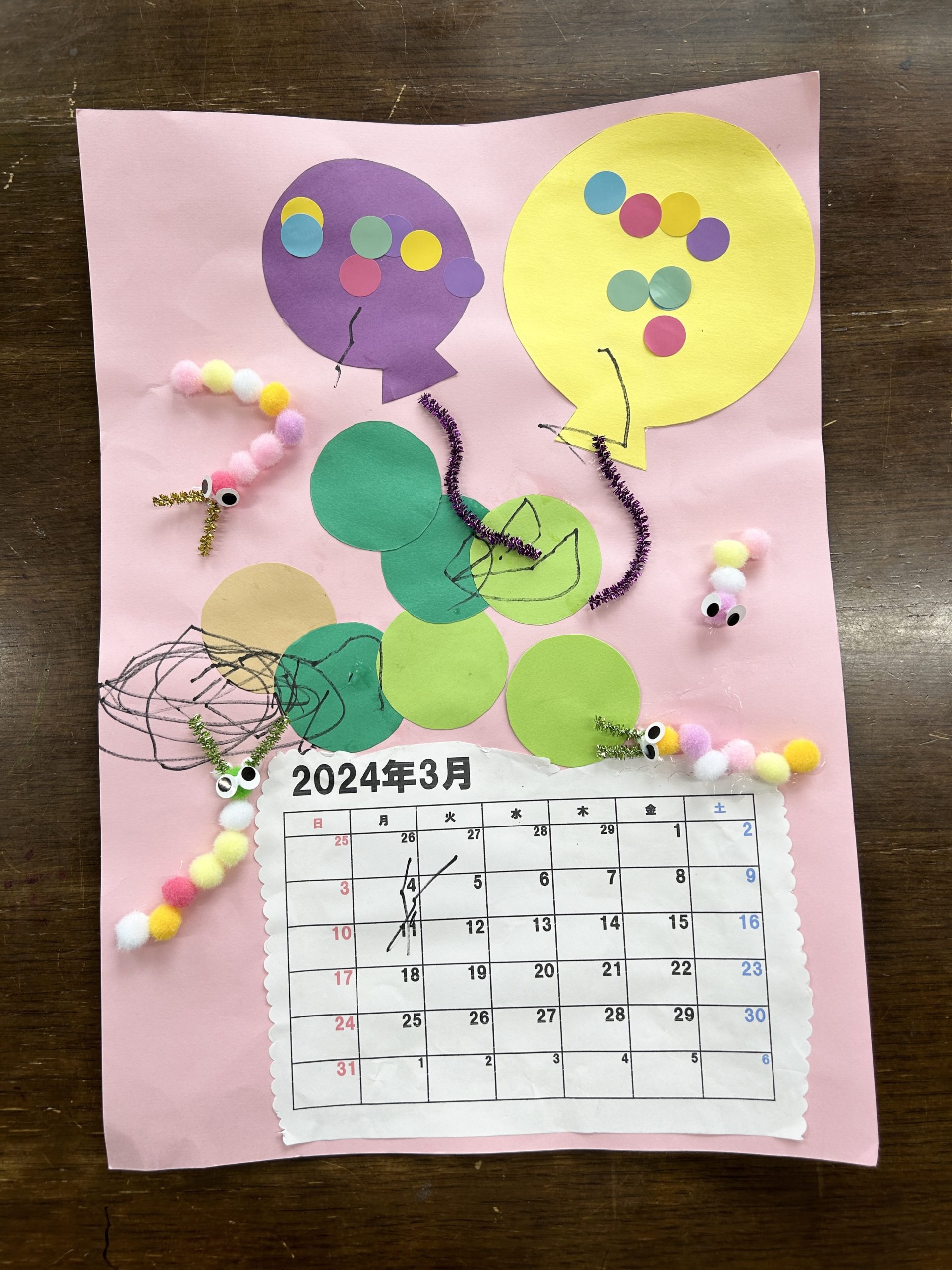 利用者さんがそれぞれ持ち帰るためのカレンダーには、青虫さんがいます😊